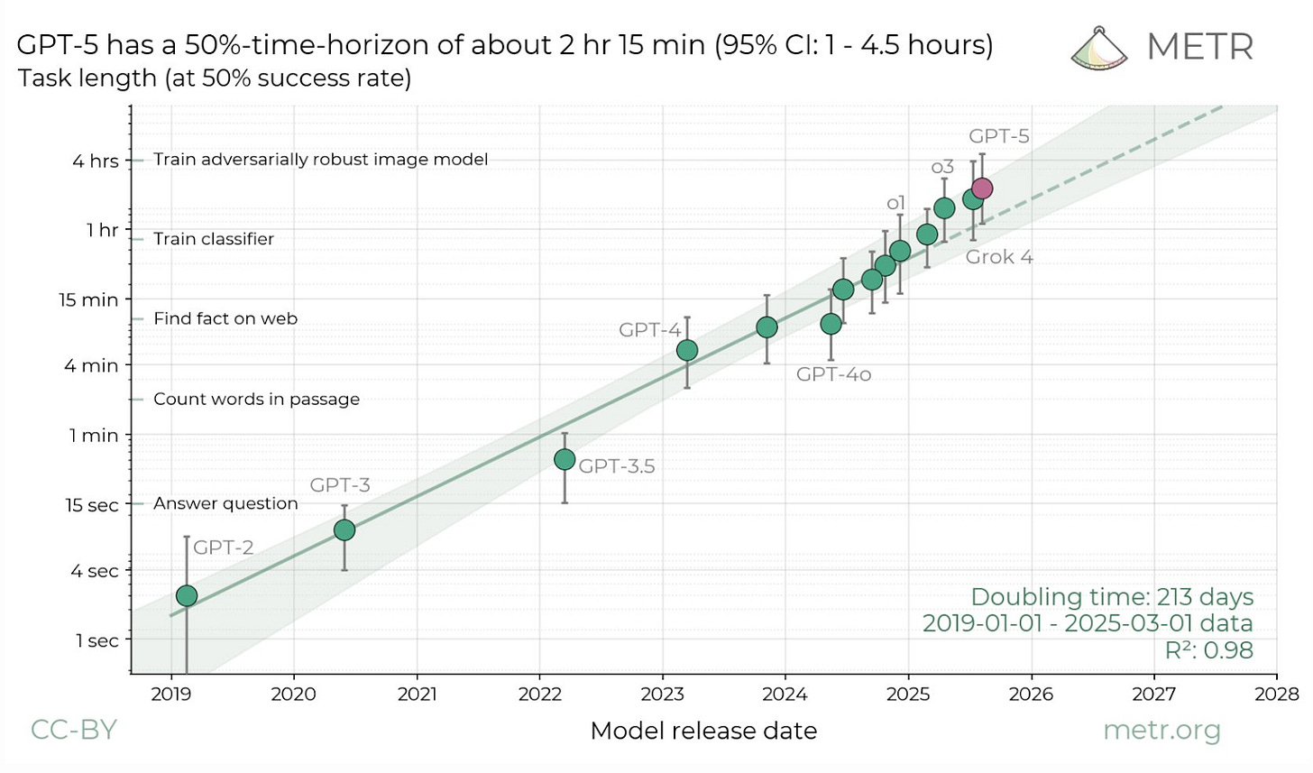 Some people think of it purely in terms of intelligence. Today, the models are smashing academic olympiads left and right, as well as completing longer tasks up to 10 hours at a time. To them, it might feel like we’re pretty close to AGI.